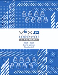 VEX IQ Competition Mix & Match wird auf einem 1,8 x 2,4 m großen rechteckigen Spielfeld gespielt, das wie abgebildet aufgebaut ist. Es gibt 3 verschiedene Spielmodi. In dem Modus "Team Challenge" treten zwei Teams miteinander an. Sie probieren gemeinsam so viele Punkte wie möglich zu erzielen. Bei den Skills tritt ein Team einzeln an. Bei den "Skills" gibt es zwei Modi: "Driving Skills", hier wird der Roboter von einem Fahrer alleine gesteuert, und "Programming Skills", indem der Roboter durch ein von dem Team erstelltes Programm gesteuert wird. Die Punkte aus den beiden "Skills"-Modi werden dann addiert für das Ergebnis in den "Skills".